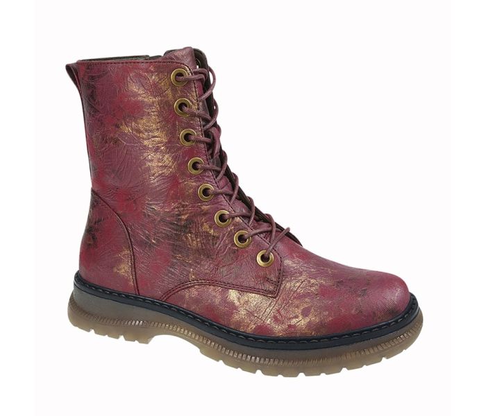 CIPRIATA L310BD ANNETTA Burgundy/Bronze/Multi PU 8 Eye Lace Inside Zip Boot