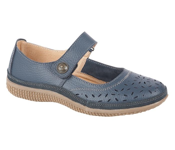 Experience the perfect blend of style and comfort with the Boulevard women's blue leather Mary Jane shoes. Crafted from Navy Action Leather, these shoes feature a touch fastening perforated bar that not only enhances breathability but also ensures an impeccable fit. The leather sock and PU lining provide ultimate comfort for all-day wear, while the extra-wide EEE fitting accommodates those seeking a spacious toe box. With a durable TPR sole, you'll enjoy exceptional grip and support with every step. Elevate your casual wardrobe with these chic and functional shoes designed for the modern woman.