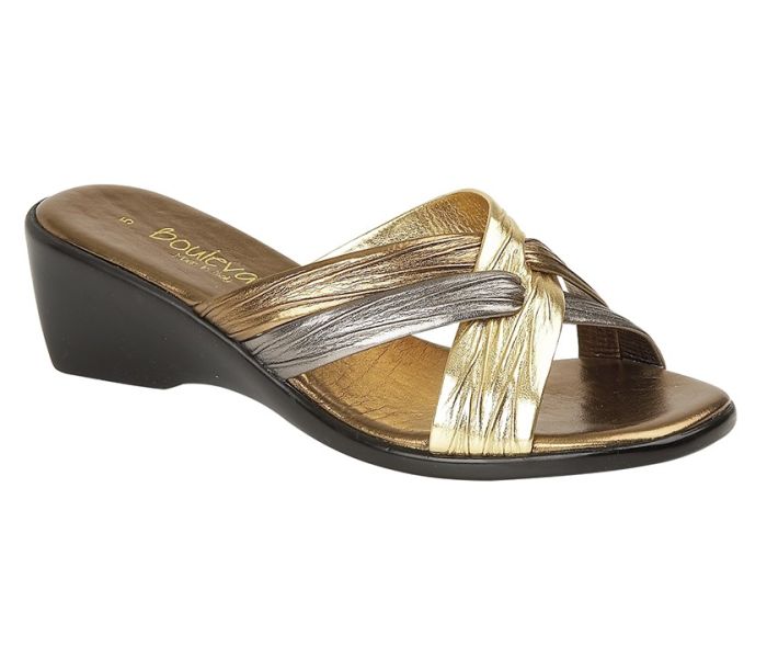 Boulevard L9558BG Bronze/Pewter/Gold PU X Over Mule Sandal