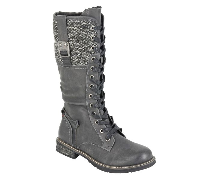 CIPRIATA L307AF GABRIELA Black/Grey PU/Textile High Leg Inside Zip Lace Up Boot