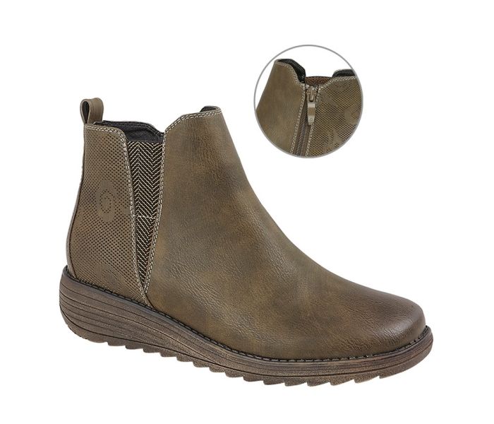 CIPRIATA L216E DEBORA Olive PU Side V Inside Zip Gusset Ankle Boot