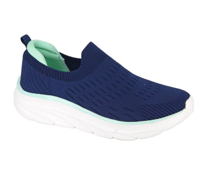 Experience the perfect blend of style and comfort with the DEK Women's Navy Knit Slip-On Sneaker. Crafted from breathable navy blue textile mesh, this superlight trainer features a soft textile lining and a comfort memory foam sock for all-day support. The lightweight EVA/PU sole ensures effortless movement, making it an ideal choice for both casual outings and active days. Elevate your footwear collection with this versatile and chic sneaker that effortlessly combines fashion and functionality.