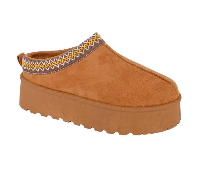CIPRIATA L570TS DANILLA Tan Microfibre Braided Cuff Platform Mule Faux Fur Lining TPR Sole