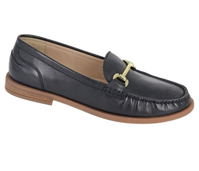 Elevate your footwear collection with the CIPRIATA Women's Niccolosa Black Leather Snaffle Bar Saddle Loafer. Crafted from premium black leather, this sophisticated loafer features a striking gold buckle that adds a touch of elegance to any outfit. The PU lining and sock ensure all-day comfort, while the durable TPR sole provides excellent traction and support. Perfect for both professional and casual settings, these loafers are a versatile addition to your wardrobe that seamlessly combines style and functionality.
