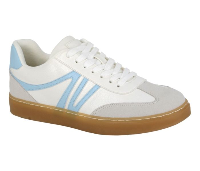 Step into style and comfort with the CIPRIATA Women's L 630GC 'REDA' sneakers. Featuring a chic white grain finish accented by a striking sky blue stripe, these lace-up platform glamour trainers are designed to elevate your everyday look. The soft textile lining and padded PU sock ensure all-day comfort, while the durable TPR sole provides excellent traction and support. Perfect for both casual outings and active days, these sneakers are a must-have addition to your footwear collection. Embrace effortless elegance and make a statement with every step.