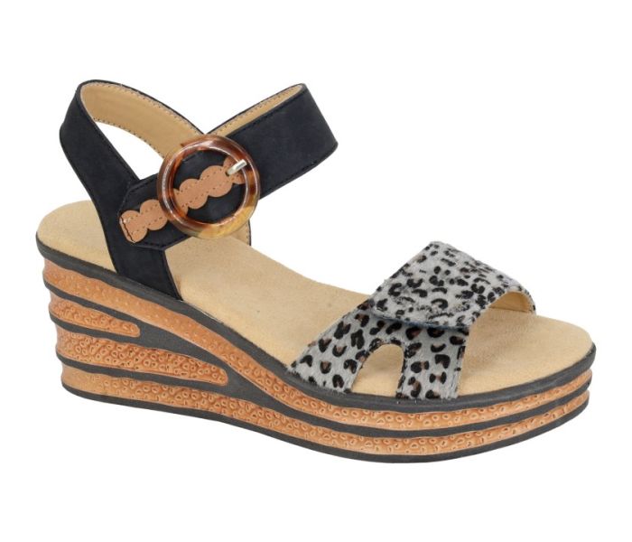 Step into style and comfort with the Cipriata Women's DANTA Wedge Sandal. Featuring a chic leopard print design complemented by a sleek black PU finish, these sandals are perfect for making a bold fashion statement. The touch fastening halter back ensures a secure fit, while the soft PU lining and microfiber sock provide all-day comfort. With a 70mm heel wedge and durable PU sole, these sandals offer the perfect blend of height and stability, making them ideal for any occasion. Elevate your footwear collection with this versatile and stylish option.