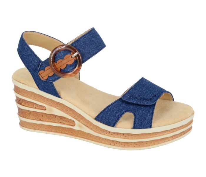Cipriata DANTA L638DNC Navy Denim Touch Fastening Halter Back Wedge Sandal
