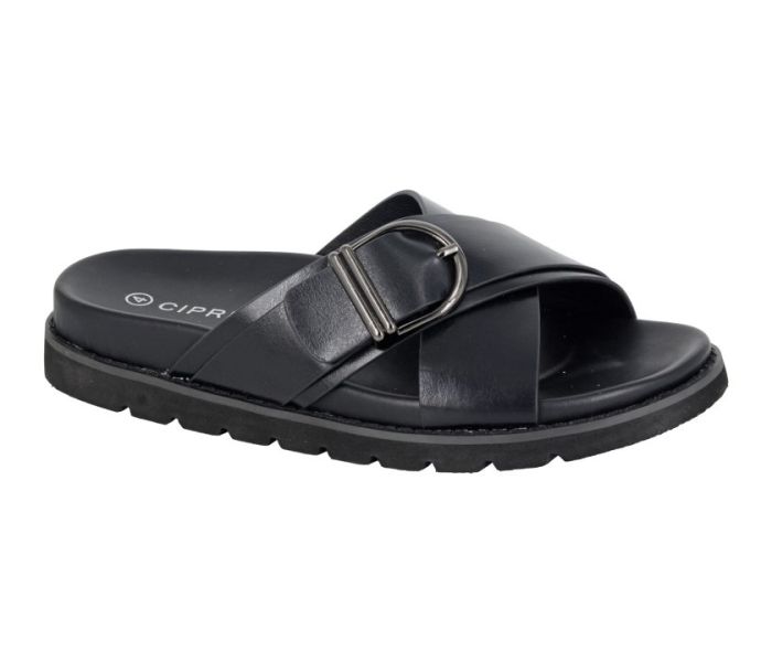 Cipriata DALIA L650A Black X Over Buckle Strap Mule Sandal