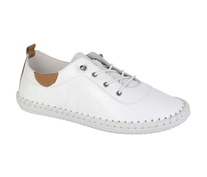 Step into effortless style and comfort with the Modcomfys White Softie Leather Shoes, featuring elegant brown trim. Crafted from high-quality leather, these unlined shoes offer a breathable experience, while the elastic lace-up design ensures a secure fit. The leather comfort sock provides cushioning for all-day wear, and the durable PVC sole guarantees stability and traction. Perfect for both casual outings and more polished occasions, these shoes are a versatile addition to any wardrobe. Elevate your footwear collection with the perfect blend of sophistication and comfort.