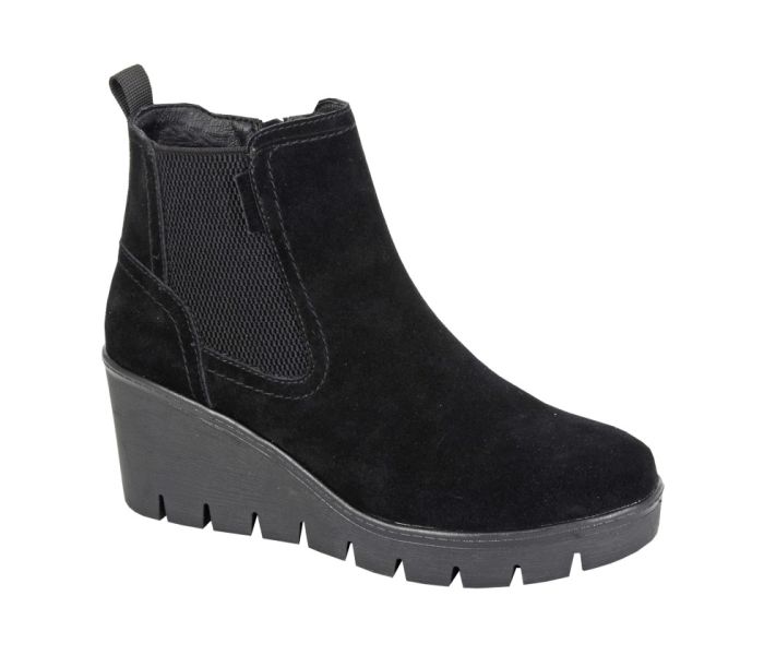 Cipriata L708AS AMINA Black Real Suede Inside Zip Gusset Wedge Ankle Boot