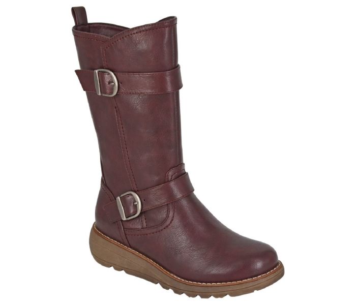 CIPRIATA L741BD ARCISA Burgundy PU Twin Buckle Inside Zip Mid-Length Boot