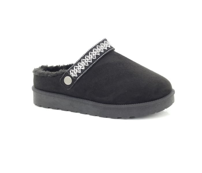Step into comfort and style with our Ladies Faux Fur Lined Clogs. These chic black slippers feature a luxurious fur trim on the side, offering a perfect blend of warmth and elegance. Designed as easy slip-on mules, they provide effortless wear for lounging at home or running quick errands. Treat your feet to the cozy embrace they deserve and elevate your relaxation game with these fashionable and functional slippers.