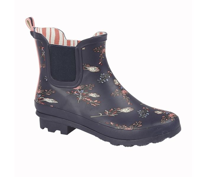 StormWells W207NC Navy Floral Print Twin Gusset Ankle Wellingtons
