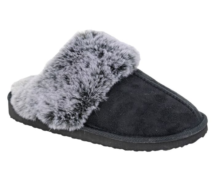 Sleepers JEANIE LS175AS Black Faux Fur Cuff Mule Slipper