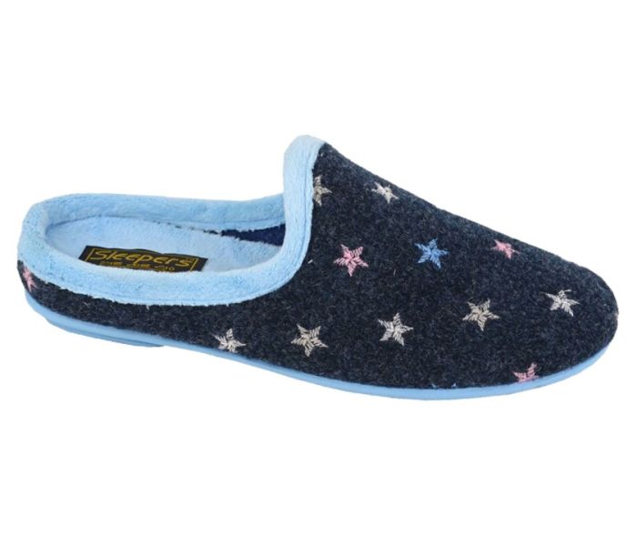 Sleepers ELLIE LS179C Blue Star Motif Cuff Mule Slipper