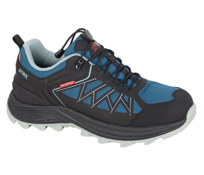 Experience the perfect blend of style and functionality with the AZTREK Women's Blue and Black Hiking Shoe. Crafted with a dynamic waterproofing membrane, these shoes ensure your feet stay dry and comfortable on any trail. The combination of durable PU and textile materials provides breathability and support, while the padded sock and textile lining enhance comfort for long hikes. The Phylon/TPR sole offers excellent traction and stability, making these shoes ideal for both rugged terrains and casual outings. Elevate your outdoor adventures with the reliability and performance of AZTREK.