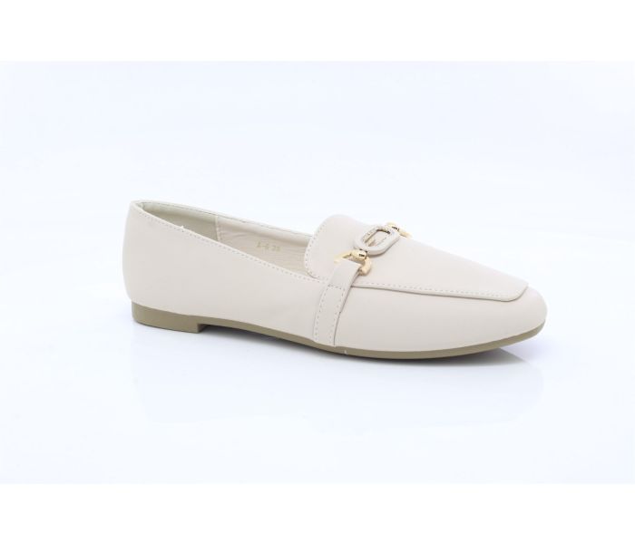 ShuCentre A6 Ladies Off White Diamante Chain Casual Slip On Loafers Shoes