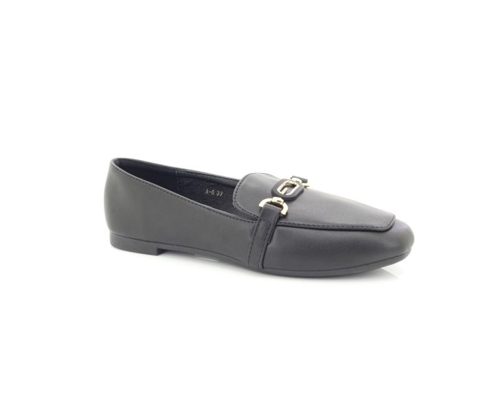 ShuCentre A6 Ladies Black Diamante Chain Casual Slip On Loafers Shoes