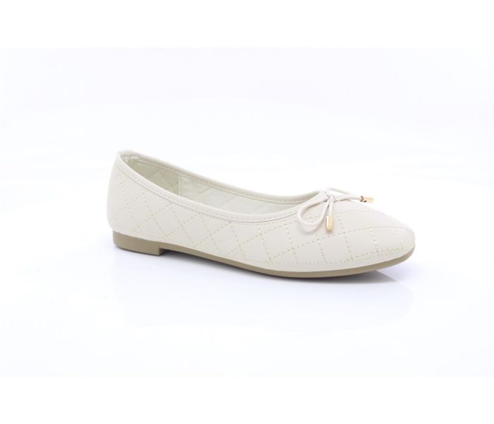 ShuCentre A7 Ladies Off White Bow Ballerina Casual Slip On Flats Pumps Shoes