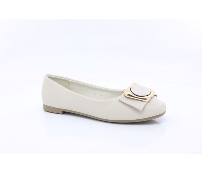 ShuCentre A8 Ladies Off White Bow Buckle Slip On Ballet Casual Flat Shoes