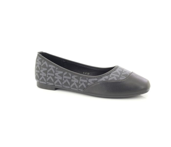 Step into effortless elegance with the ShuCentre A9 Ladies Mary Jane Flats. These stylish black and grey slip-on shoes feature a unique patterned design that adds a touch of sophistication to any casual outfit. Crafted for comfort and versatility, they are perfect for all-day wear, whether you're running errands or enjoying a leisurely day out. Elevate your footwear collection with these chic pumps that seamlessly blend fashion and functionality.