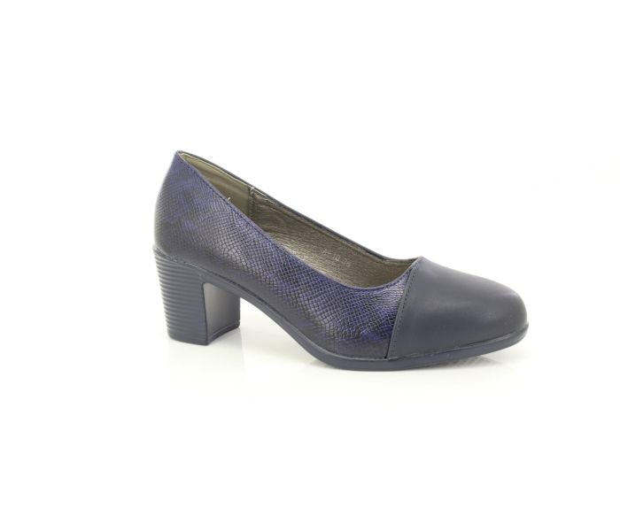 Ladies Navy Snake Print Comfort Casual Slip-On Mid Heel Court Shoes