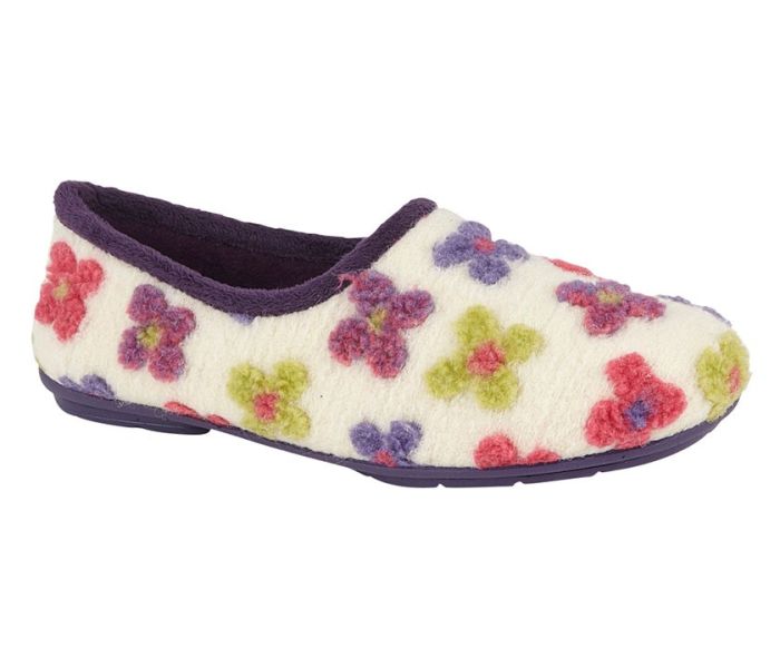 SLEEPERS GRACIE Knitted Multi Flower Floral Memory Sock Full Slippers LS382BE