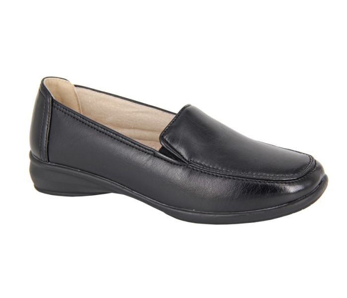 Experience the perfect blend of comfort and style with the Boulevard Women's Slip-On Shoe. Crafted from premium Black Softie PU, this shoe features a luxurious pig leather lining and sock for a soft, breathable fit. The extra-wide design ensures all-day comfort, while the twin gusset casual style allows for easy on-and-off wear. With a durable leather sole and a lightweight PU sole, these shoes are ideal for both casual outings and everyday wear. Elevate your footwear collection with this versatile and chic option that promises to keep you looking stylish without sacrificing comfort.