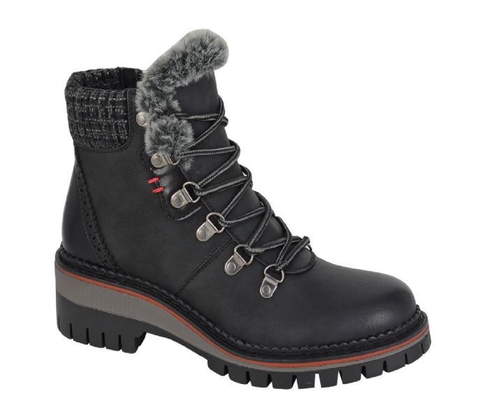 Step into style and comfort with the CIPRIATA Women's Teodora Ankle Boot. Crafted from premium black PU , this hiker-style boot features a luxurious fur lining and a padded textile collar for ultimate warmth and support. The inside zip allows for easy on-and-off wear, while the memory foam sock ensures all-day comfort. With a durable TPR sole, these boots provide excellent traction and stability, making them perfect for any adventure. Elevate your footwear collection with this versatile and chic addition that seamlessly blends fashion and function.